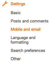 - Go to the Settings | Mobile and email tab on your blog.